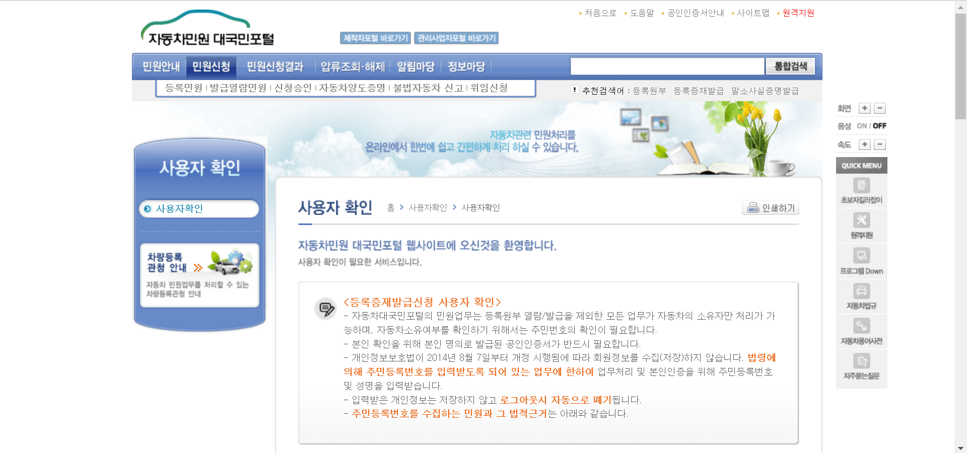 : 주민센터나 구청보다는 멀 수 있지만 차량등록사업소에 가셔서 자동차등록증 재발급 서류를 준비해 가신다면 빠른시간안에 자동차등록증을 재발급해주실 것입니다.